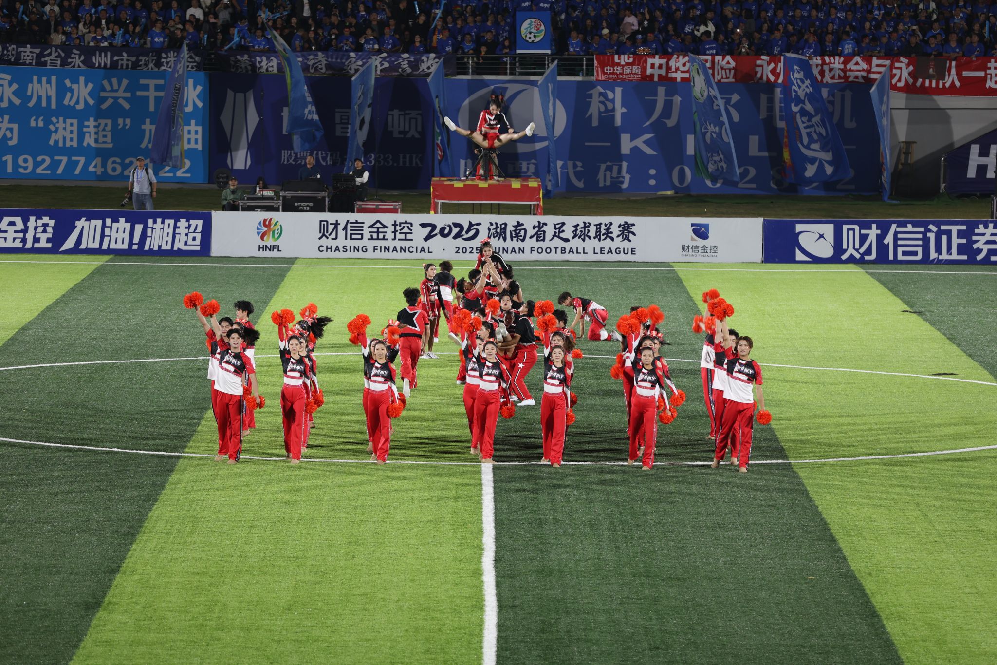 本网讯(通讯员 盘华)10月26日第七轮湖南省足球超级联赛永州主场对阵长沙,对决开场前一幕视觉盛宴在赛场中央激情上演,我院盘华和郑华艳老师带领的XKY啦啦队与美院200多名啦啦操队员用她们充满活力与激情的表演,瞬间点燃了现场球迷的热情,为紧张激烈的足球赛事注入了无限的青春动感。