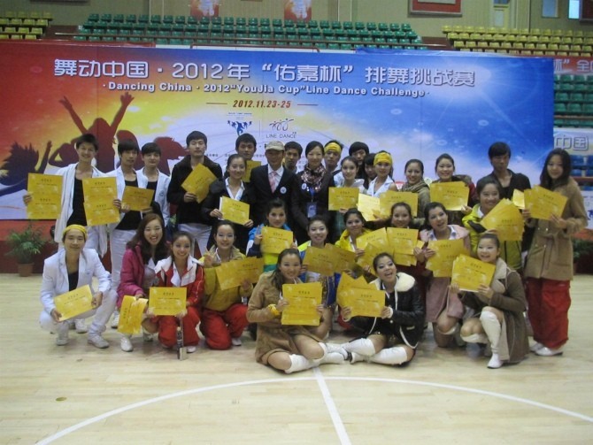 舞动中国•2012“佑嘉杯”排舞挑战赛捷报 2012年11月23日,湖南科技学院体育系排舞代表队在舞动中国•2012“佑嘉杯”排舞挑战赛中取得了一个一等奖、三个二等奖的成绩。 在总教练李静老师的带领下,我校代表队在此次比赛中斩获佳绩,分别获得了大专院校组规定曲目一等奖、集体原创曲目二等奖、大专院校组自选曲目二等奖和团体二等奖的优异成绩。同时,湖南科技学院在本次比赛中还被评为“优秀单位”,李静老师被评为“优秀教练员” 曹露、徐福中被评为“优秀推广教练员”。 我校参加本次比赛的同学有曹露、唐绿叶、李婉琴、杨丹、廖晓璐、唐燕红、唐军路、唐青莲、程英、李冰、李飞、王金梅、姚景景、王浩宇、姚俊、周杰、郑强、钟涛、冯飞虎、曾凤、蒋津津、张莉、宋飞燕、徐福中、李超、俞望、申梦华、张勇。 本次比赛是由国家体育总局主办、杭州市体育局承办的全国性比赛。参加此次比赛的共有39支队伍,他们分别来自云南、浙江、湖南、重庆等不同地区,以及不同的民族。
