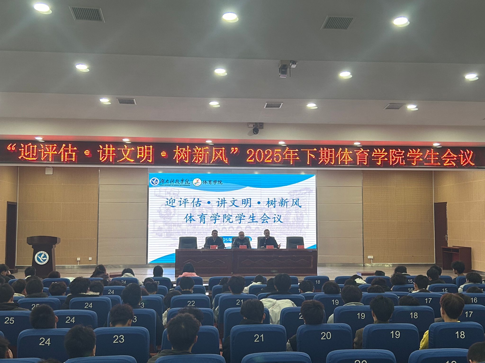 本网讯(通讯员 贺容容)10月22日,体育学院召开学生专题会议,围绕“迎评估·讲文明·树新风”主题开展集中教育,就迎接本科教育教学审核评估与加强校园安全作出部署。学院党总支书记陈泽顺、党总支副书记刘华剑出席会议,全体学生参加。