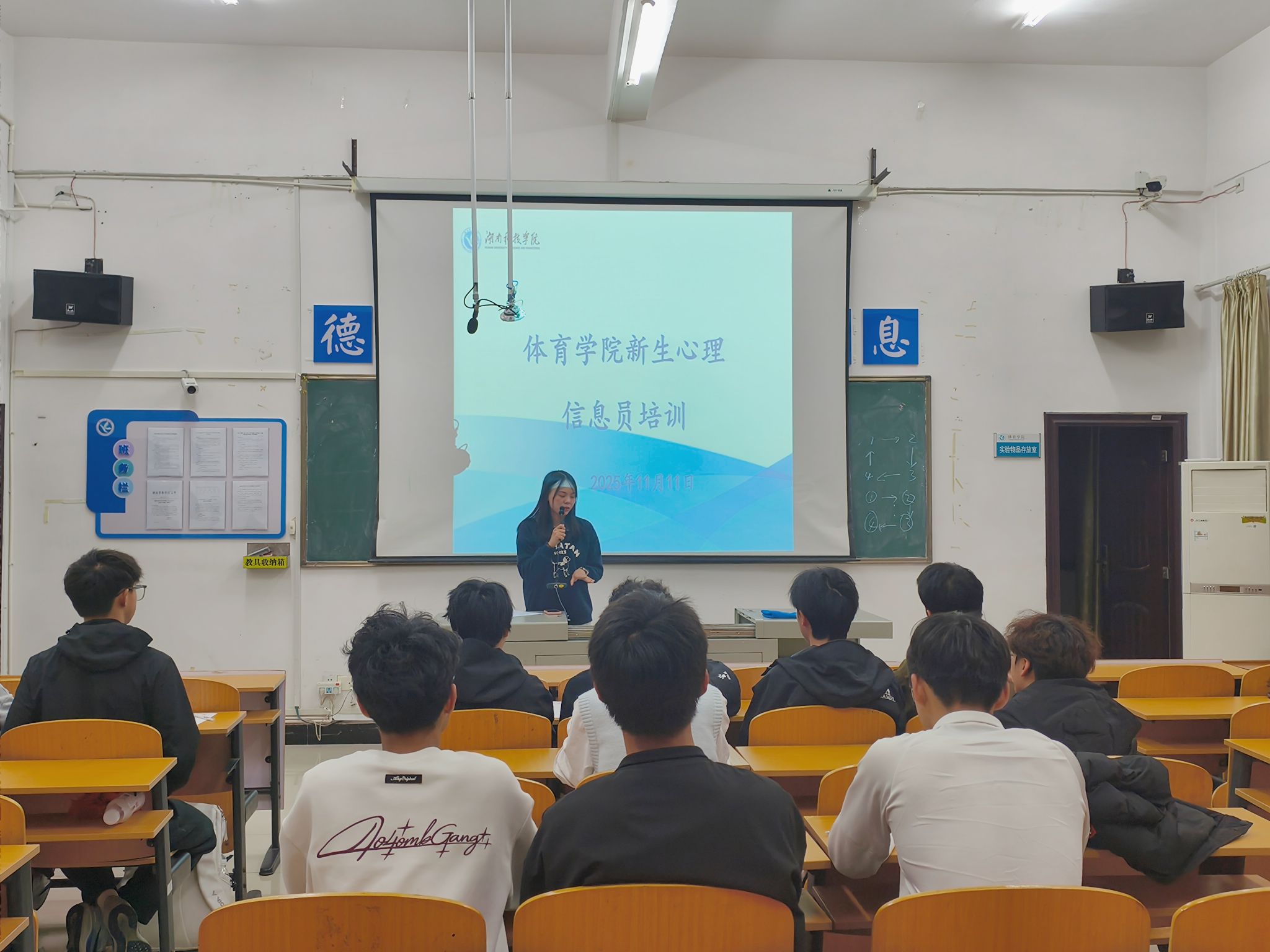 本网讯(通讯员 贺容容)11月11日,体育学院顺利完成2025级新生心理信息员专题培训与考核工作。本次培训由学院心理专干贺容容老师主讲。