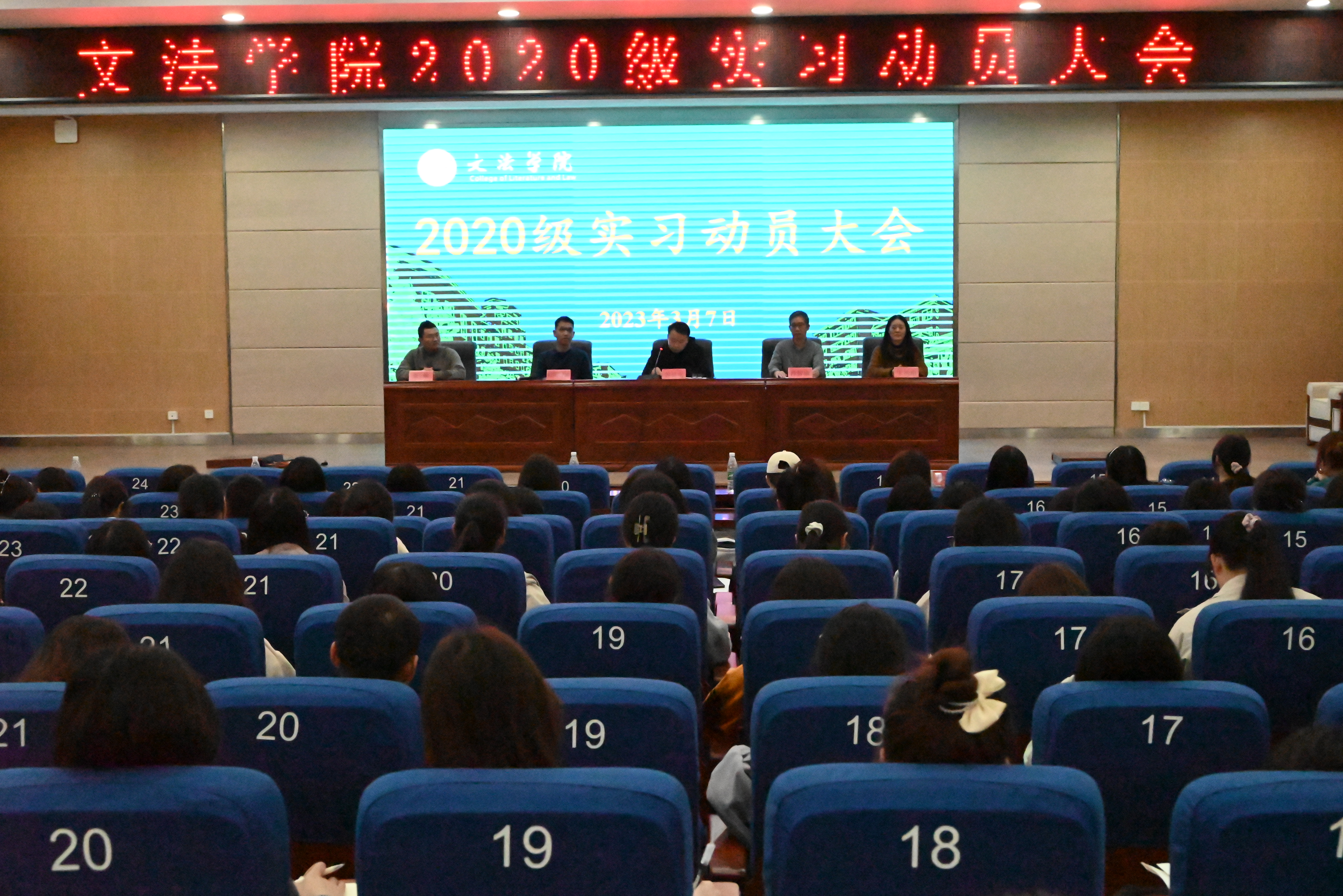教育实习是师范教育贯彻理论联系实际原则、实现培养目标不可缺少的教学环节,是教学计划中的重要组成部分。为了保证实习工作的顺利进行,3月7日下午,文法学院在潇湘大讲堂召开了2020级实习动员大会。院长谷显明老师、副院长肖智成、党总支副书记欧阳智超、实训部主任宋艳旭、20级学生辅导员张健,以及2020级汉语言文学专业全体同学到场参加。