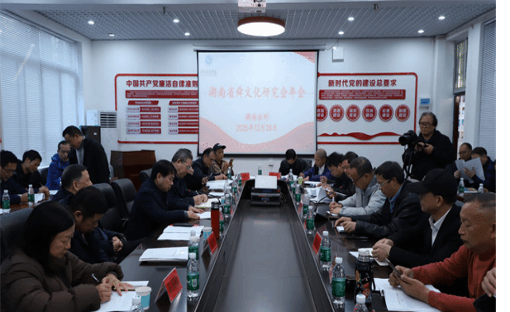 本网讯 12月28日上午,湖南省舜文化研究会2025年年会暨“舜帝南巡与德化南国、民族融合”学术座谈会在湖南科技学院举行。该校党委委员、副校长李常健,永州市社科联党组书记、主席陈水恩等出席会议。湖南省舜文化研究会会员齐聚一堂,共同分享一年来关于舜文化研究的成果与经验。