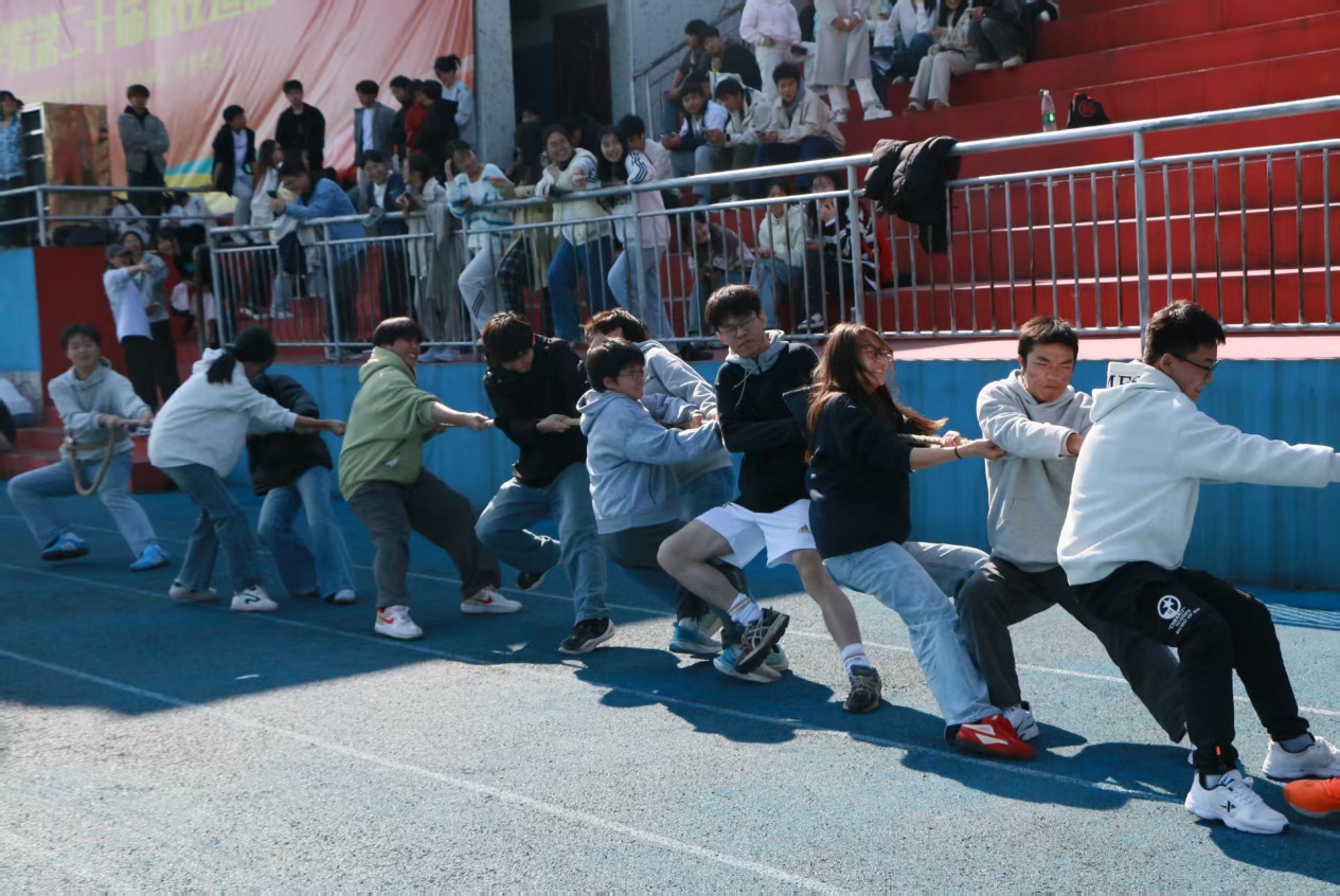 为丰富校园文化生活,增强学生体质与团队协作精神,11月23日,在湖南科技学院第三届“一站式”学生社区校园文化艺术节中,由我院承办的“绳系团队心,力拔凌云志”校园拔河比赛活动于桃园操场进行。现场气氛热烈,展现了学子们团结拼搏的精神风貌。