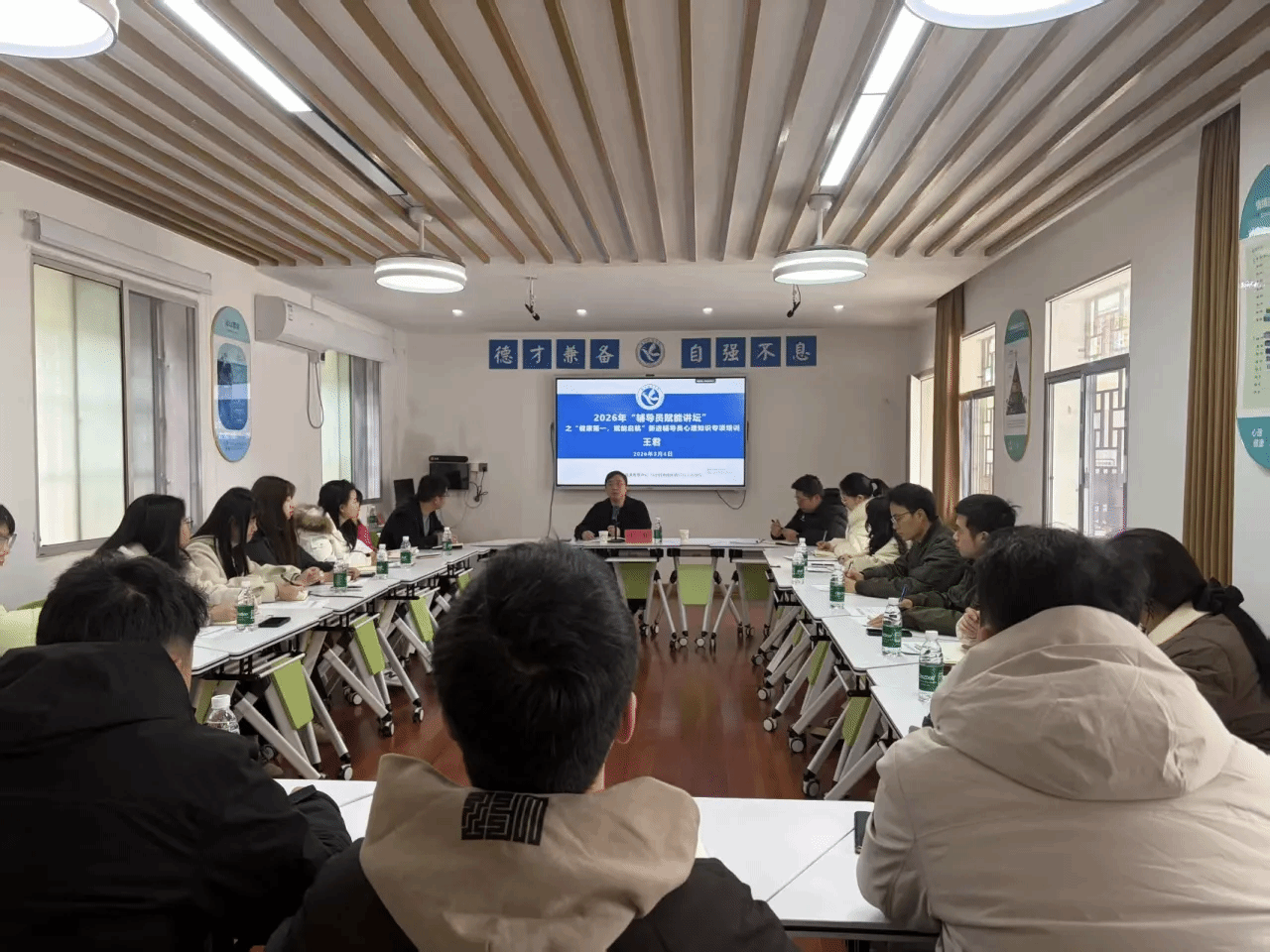(编辑:颜钰轩 刘依萱 罗淑雅)为深入贯彻“健康第一”教育理念,培养新进辅导员心理育人专业能力,搭建全员育心体系。3月4日,学校2026年“健康第一,赋能启航”辅导员赋能讲坛之新进辅导员心理知识专项培训在大学生心理健康中心智慧教室正式开讲,心理中心所有老师参加,学工部副部长王君出席本次会议,2025年新入职辅导员全员参训。第一讲由心理中心主任涂巍主讲,内容涵盖心理健康教育工作文件的解读以及常见心理异常识别与上报。