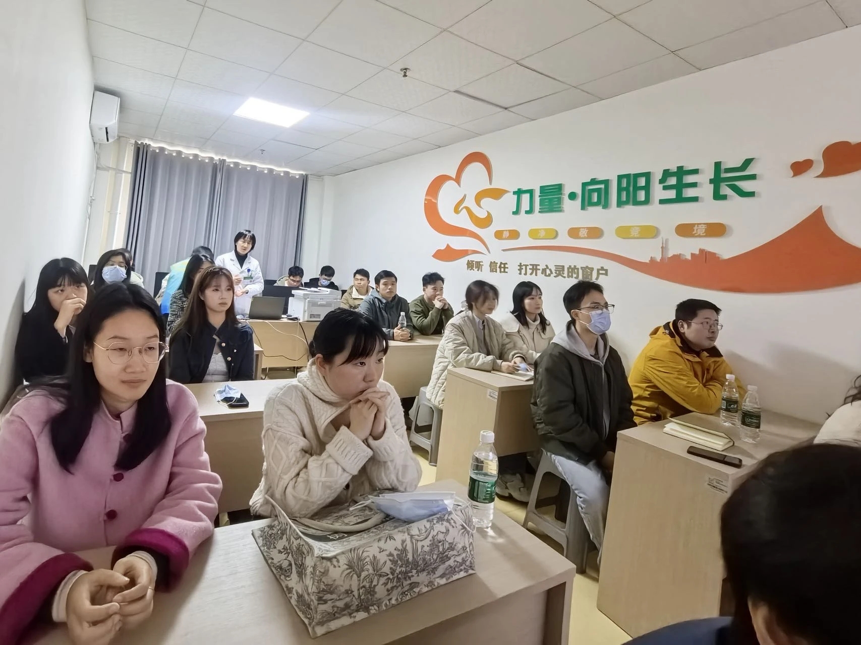 随后现场观摩精神科医生问诊过程,参与典型病例研讨,在实践场景中学习危机干预技巧;本次见习包含病症学讲解、典型精神疾病的识别相关内容,并通过专家面对面沙龙,深入学习异常心理识别与帮扶方法,进一步明晰从初步评估到专业转介的完整干预链条。