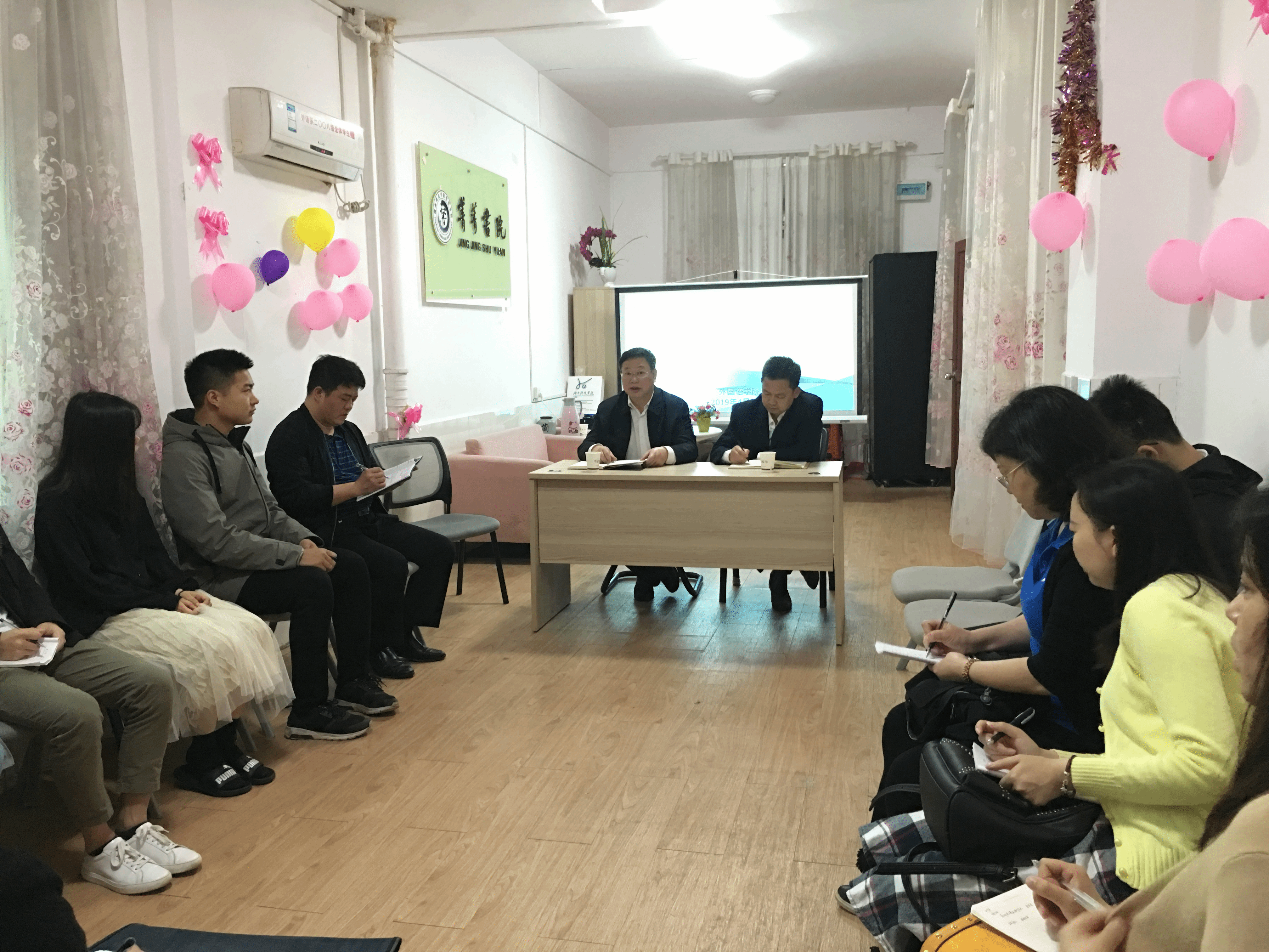 本网讯(通讯员杜俊杰)4月23日上午,学工部长唐华山、副部长胡敏辉深入外国语学院开展调研,在菁菁书院召开师生座谈会。外国语学院党总支书记雷树彬主持座谈会,副书记罗晶、全体辅导员、班主任和学生代表参会。