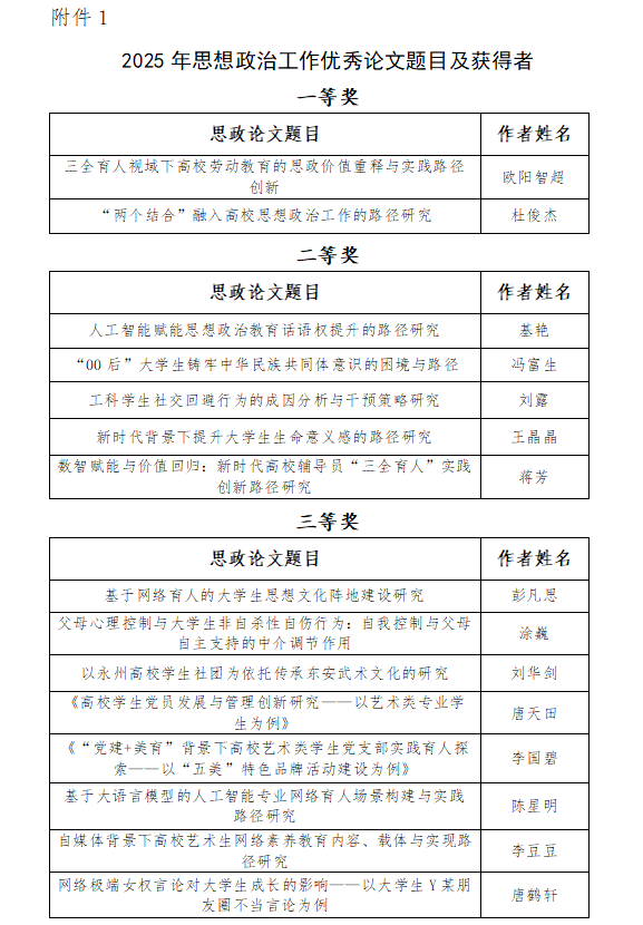 1.2025年思想政治工作优秀论文题目及获奖者名单