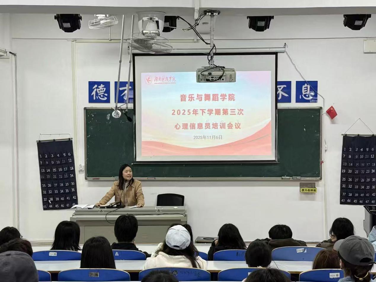 本网讯(通讯员:李乐 胥飞云) 为持续夯实心理育人工作基础,加强学院心理信息员队伍建设,音乐与舞蹈学院于10月20日至11月17日组织开展心理信息员系列专题培训,并于11月16日组织完成心理知识培训考试。本次培训由学院心理专干李乐老师主持,2025级全体心理信息员及心理健康部成员全程参与。