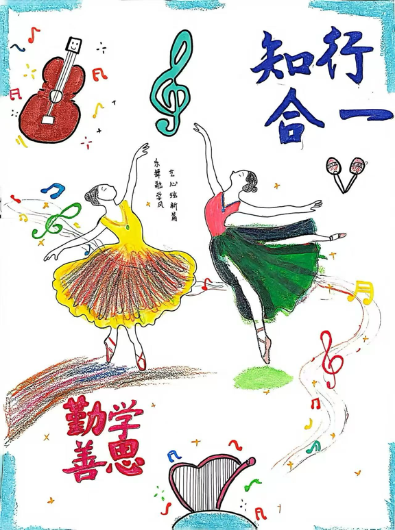 本次大赛面向全院学生征集作品,参赛者围绕“乐舞”与“学风”的融合主题,以画笔为媒介展开创作。从展出的作品中可见,参赛海报将舞蹈的灵动姿态、音乐的符号元素与“知行合一”“善思”等学风理念巧妙结合,色彩丰富、构图新颖,既有艺术美感,又紧扣学风建设内核,生动展现了学子们对艺术与学风融合的理解与思考。