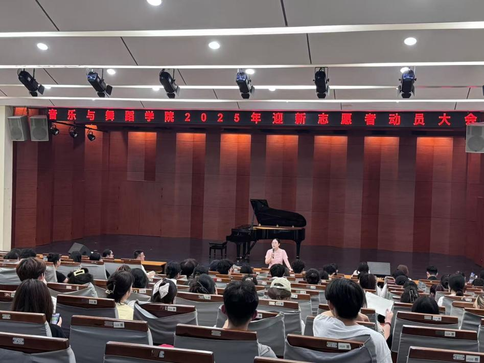 本网讯(通讯员 马一鸣 江语馨 章可昕)为给新生营造温馨、有序的入学环境,9月18日晚7点,音乐与舞蹈学院在小音乐厅召开2025年迎新志愿者动员大会。学院党总支书记、副书记,各年级辅导员和全体迎新志愿者参加会议,会议由党总支副书记蒋磊主持。