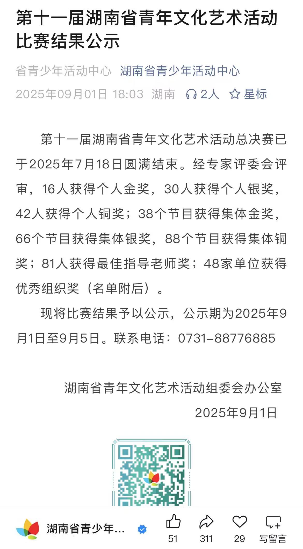 此次获奖不仅为湖南科技学院音乐与舞蹈学院再添荣誉,更体现出当代青年以艺术方式传承中华文化的使命与担当。未来,团队将继续深耕传统文化领域,以更多创新作品展现“破茧成蝶”的青春力量,在更广阔的舞台上绽放光芒。