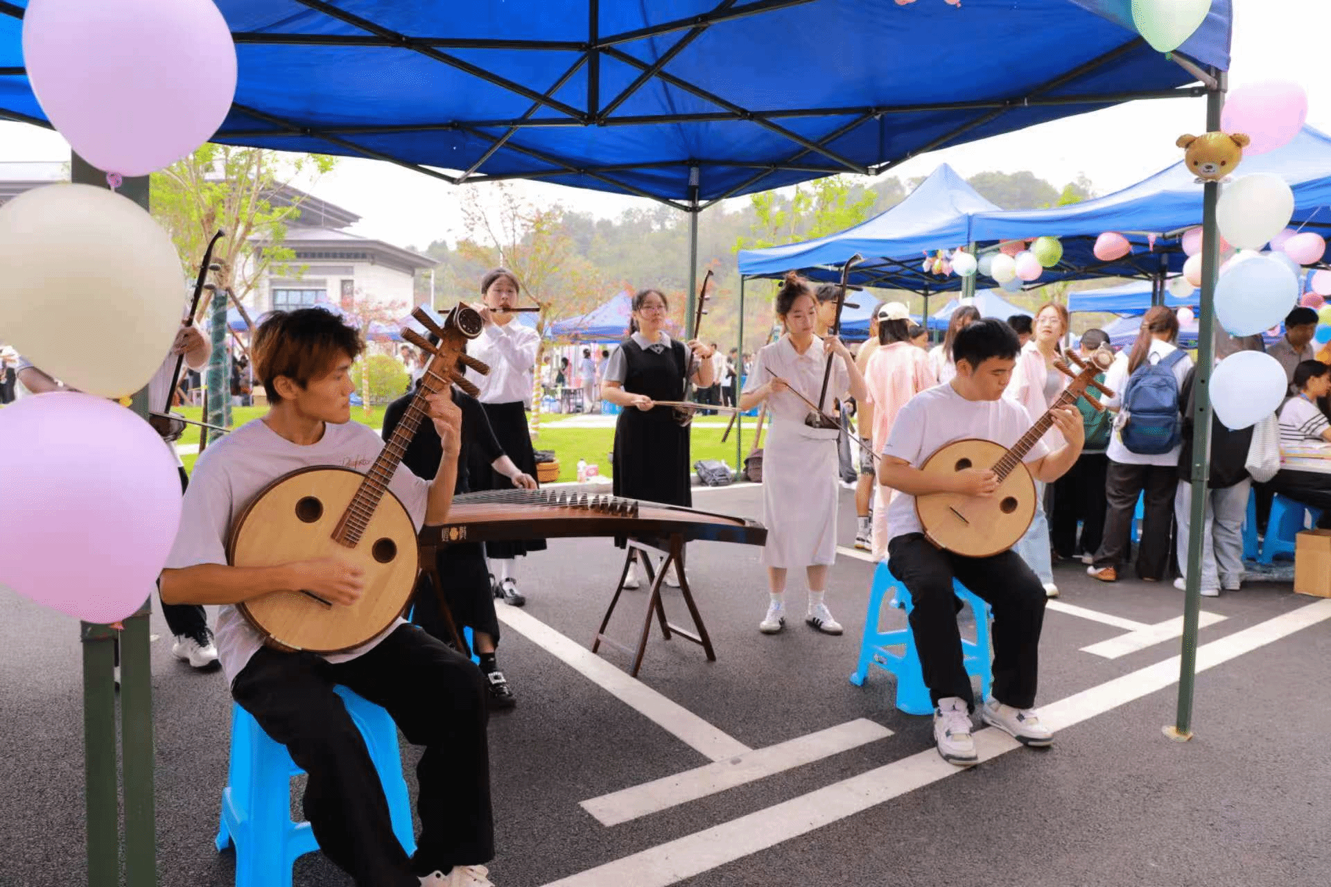 活动现场,学院永烜民乐团用古筝、中阮、二胡、竹笛四种中国传统乐器,演奏《灌篮高手》主题曲,明快的节奏、和谐的旋律不仅展现了中国传统音乐的独特魅力,也使参与师生在音乐中舒缓情绪、放松身心。