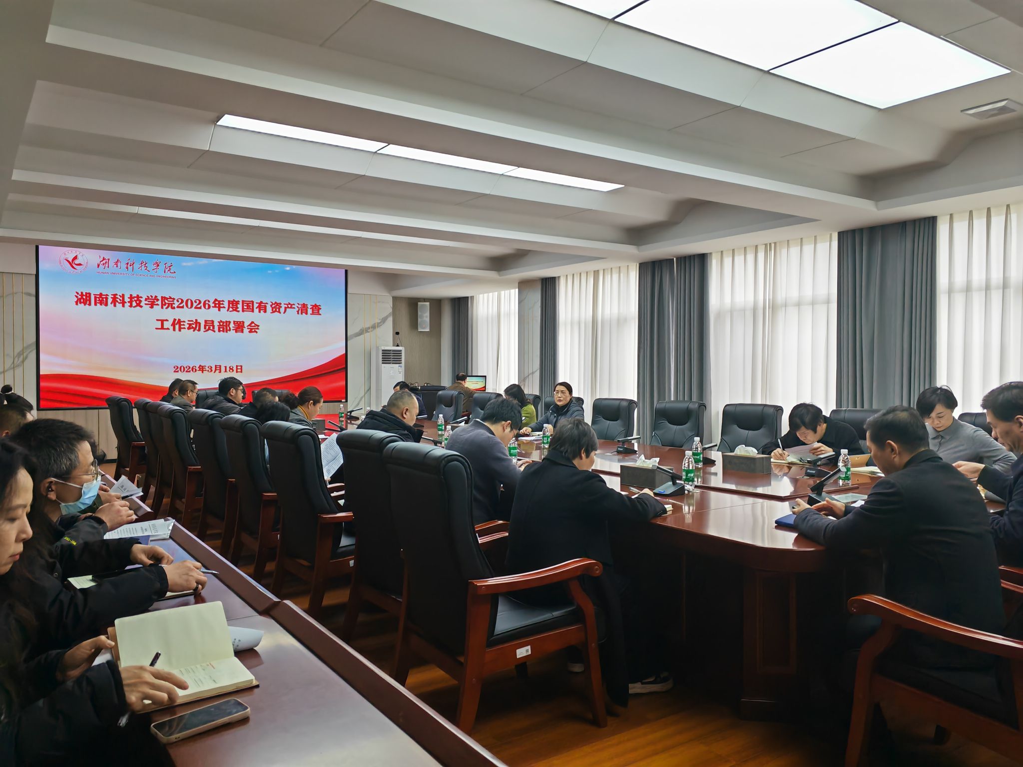 2026年3月18日下午,湖南科技学院2026年度国有资产清查工作动员部署会在行政楼 613 会议室召开。会议由副校长郑银芳主持,行政机关、教辅部门及各二级学院主要负责人参会。