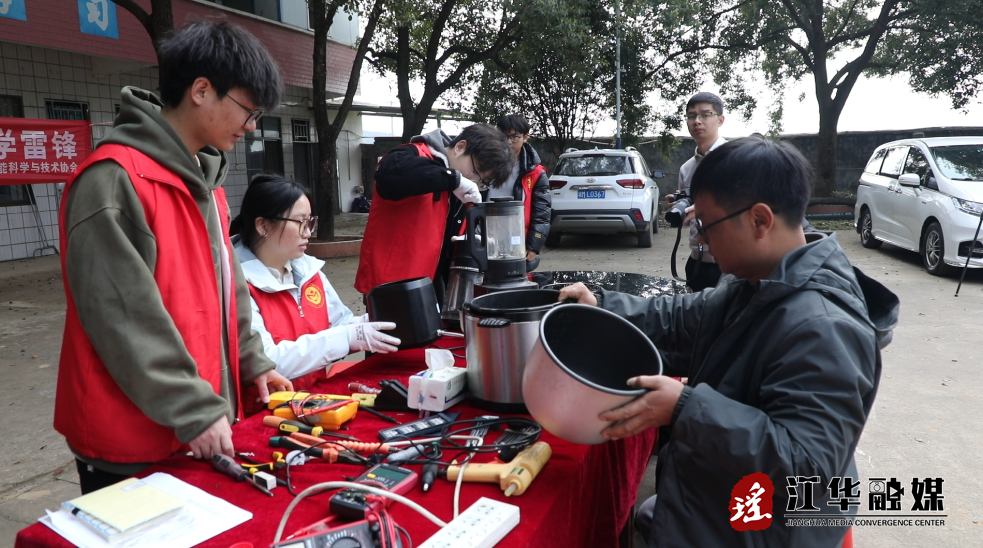 “授人以渔”的同时也解民之所急,湖南科技学院智能科学与技术协会会员等学生志愿者们还开展家电义务维修,为村民维修电风扇、电饭煲等小家电。