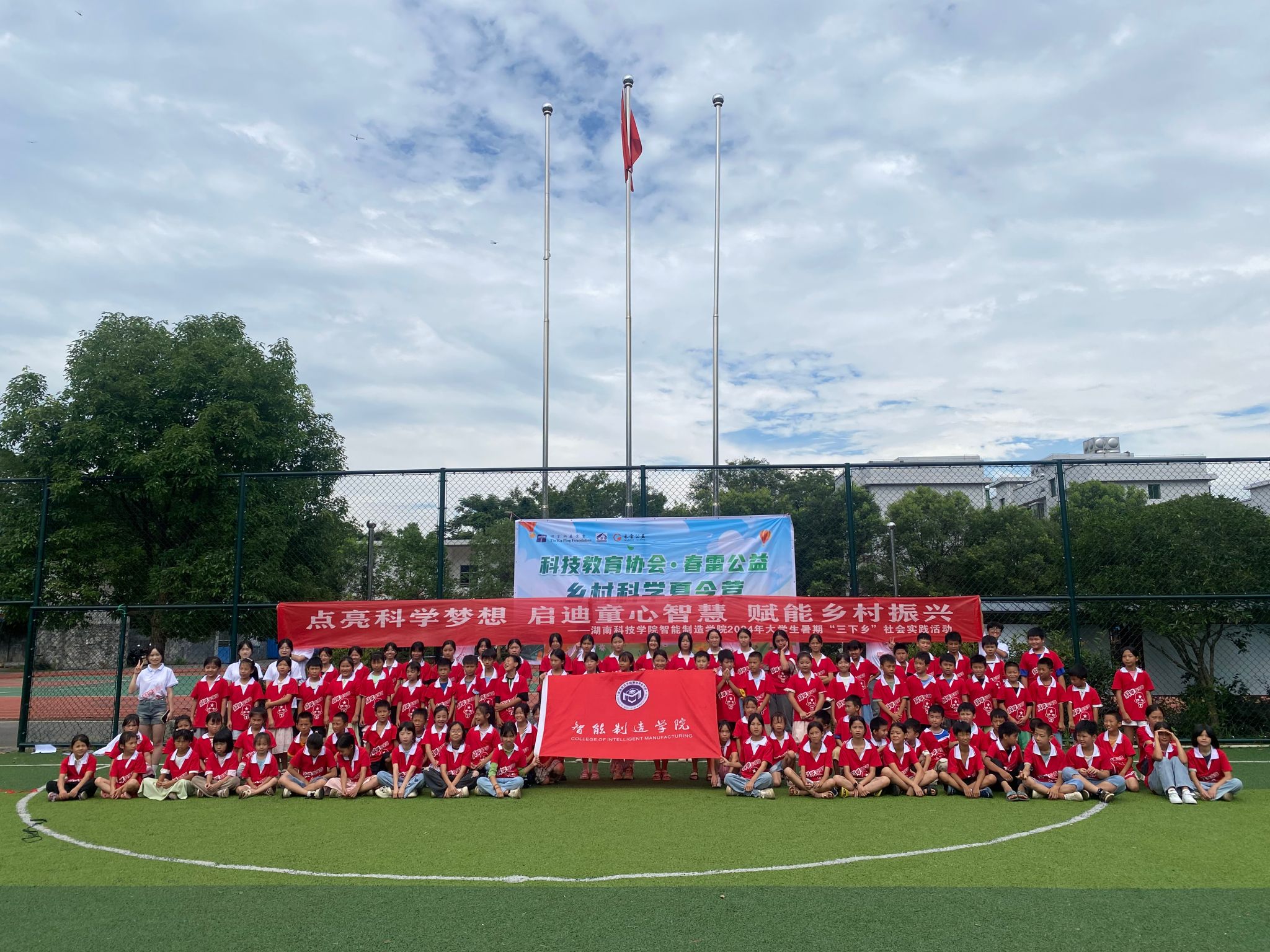 为激发乡村小学生崇尚科学、探索未知的兴趣,培养动手能力和创新能力,助力“双减”落地,让埋在乡村青少年心中的科学种子生根发芽。7月3日,智能制造学院“科学联系生活”教育关爱服务团赴往永州市江华瑶族自治县竹园寨九年制学校,开展“春雷公益乡村科学夏令营”暑期“三下乡”社会实践活动。通过开展科学小实验、宣讲国家科技攻关事迹、普及心理健康知识、青年“话廉洁”等形式,引导乡村小学生心怀科学梦想,崇尚科学精神,树立强国抱负。