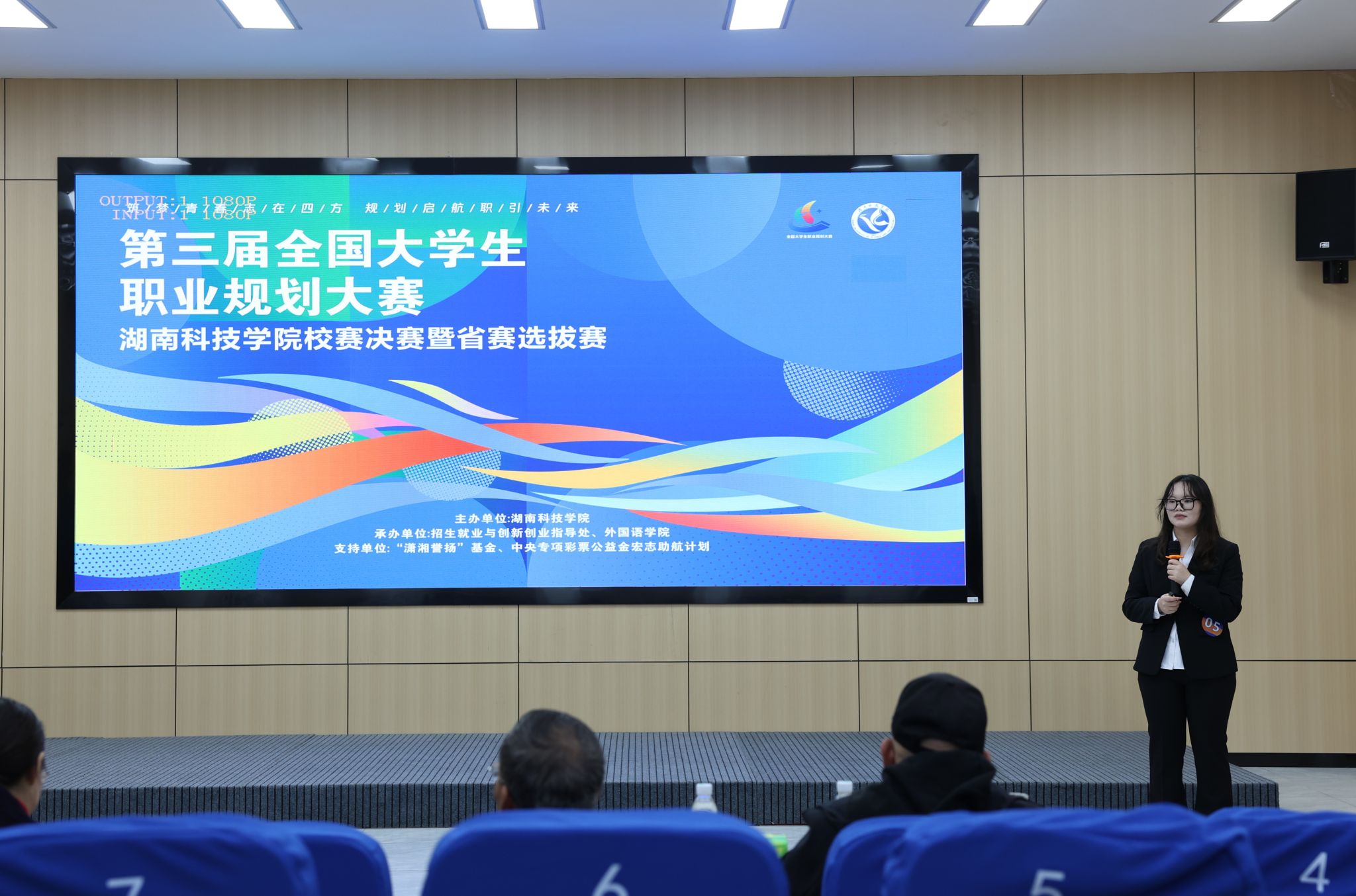 12月20日,我校第三届大学生职业规划大赛决赛暨省赛选拔赛在明德楼100报告厅成功举行。副校长郑银芳,中南大学毕业生就业指导服务中心副主任陈晚云,五矿二十三冶知行学院副院长邱智军出席活动,我校学生工作部、计划财务处、招生就业与创新创业指导处等相关职能部门负责人参加活动。