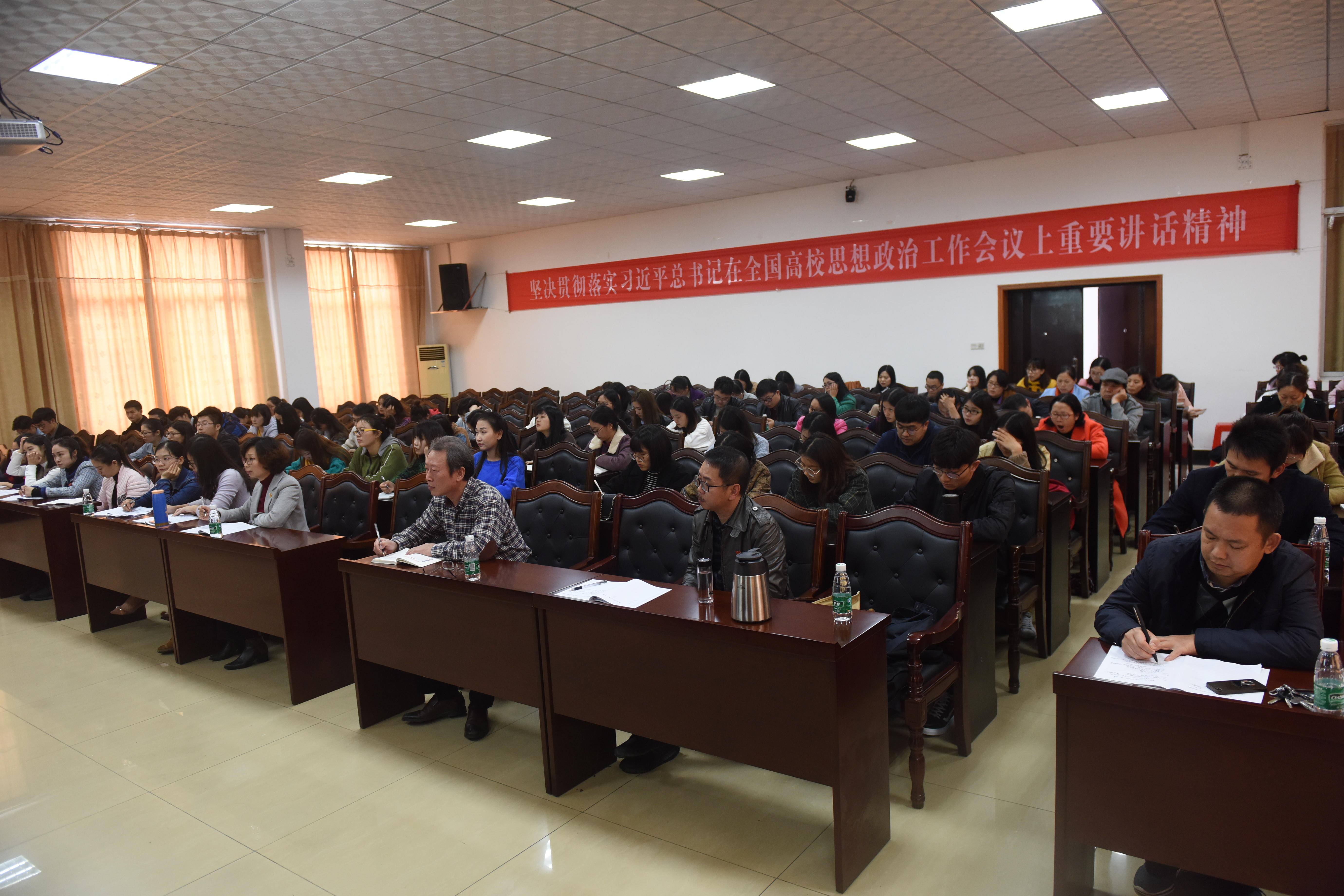 宋宏福从十九大的印象、新时代的诠释和新时代要有新作为三个方面,对新时代的丰富内涵、新时代的主要矛盾、新时代的指导思想等重要内容进行了阐述和解读。他结合学校的发展实际分享了自己对新时代教育的体会,勉励教师党员要坚守大学的理想和愿景,争做优秀教师,营造好的课堂。他还从自身的工作实际出发分享了对推进内涵建设、释放人才活力的感悟。