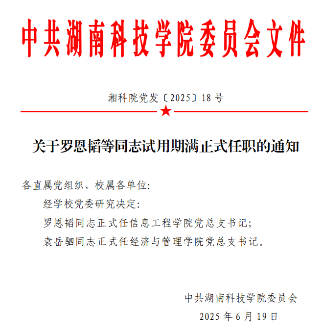 关于罗恩韬等同志试用期满正式任职的通知