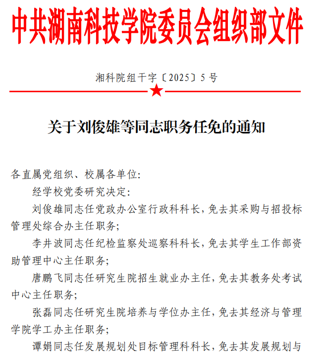 关于刘俊雄等同志职务任免的通知