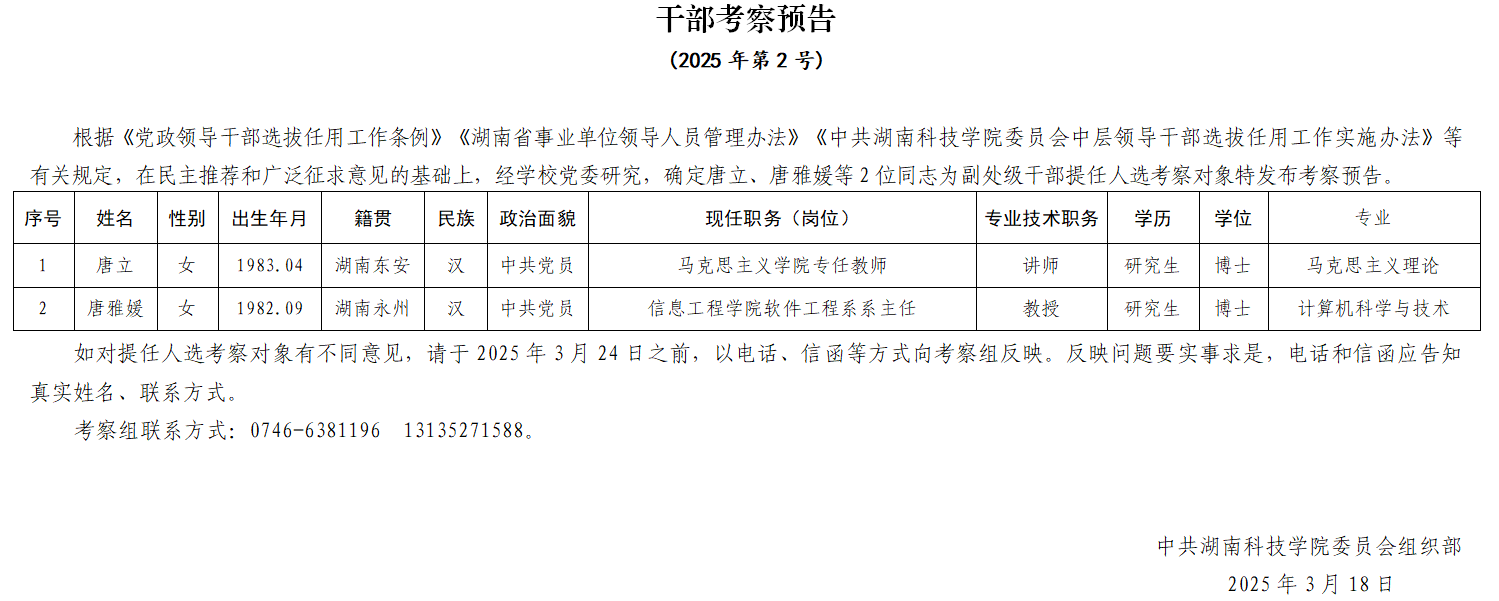 干部考察预告 (2025年第2号)
